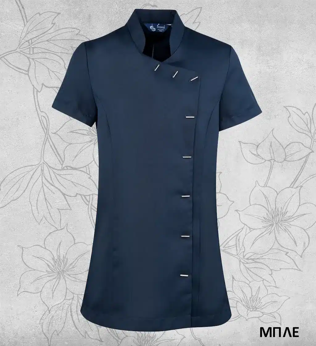 Κομψή Γυναικεία Ρόμπα Αισθητικού που σίγουρα δεν θα περάσει απαρατήρητη! Με κολακευτική γυναικεία εφαρμογή, καθώς και με μπούστο και πιέτες στην πλάτη. Αναδεικνύει την εξωτερική εμφάνιση και δίνει εντυπωσιακό και μοντέρνο στυλ στο προσωπικό καταστημάτων αισθητικής, σπα, κομμωτηρίων κ.α.